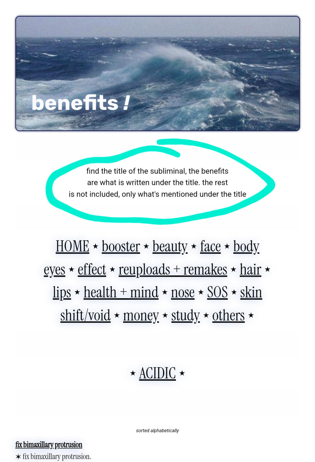Benefits β they explain what a subliminal will give you. it's a summary of the affirmations in a subliminal
