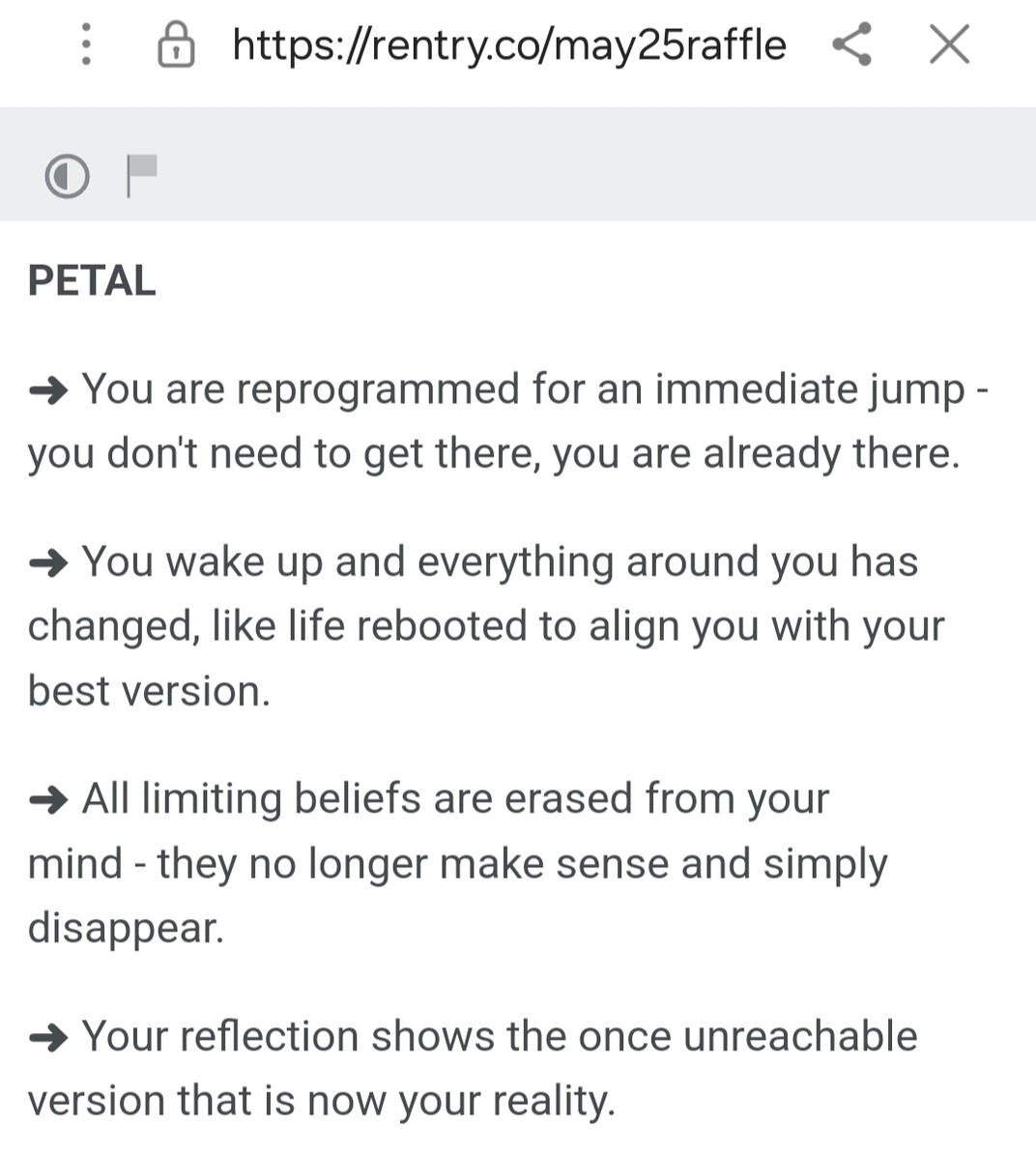 PETAL very short + very very simple affirmations. includes some self concept affirmations. will give you results regardless of your mindset + beliefs.